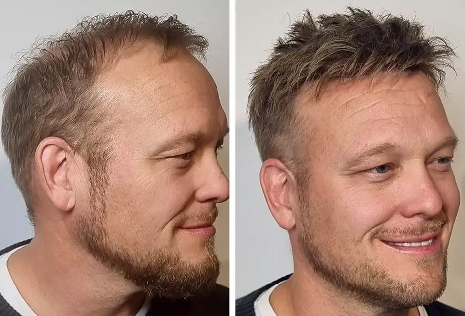 Instant results for hair loss, with partial or full coverage achieved in under 2 hours.